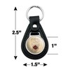 - QUALITY MATERIAL: Our durable round keychain is crafted from leather with a glossy resin-topped emblem featured design shown on one side. Approximately 1.5" (3.8cm) x 2.5" (6.4cm) in overall size, emblem is 1" (2.5cm)..