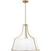 Embrace timeless elegance with the Harte pendant light, a classic choice for adding a touch of traditional charm to any space. The fixture's design is both classic and simple, making it a versatile addition to a variety of decor styles. Harte features a rich bronze gold finish that exudes sophistication, complemented by a white fabric drum shade that offers a soft, diffused glow. The combination of the elegant finish and the clean lines of the drum shade creates a refined look that enhances the ambiance of any room.