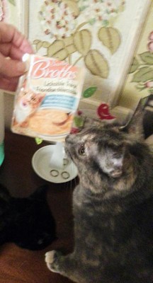 [This review was collected as part of a promotion.] I received free samples from Peekage in range for my honest review. My 2 cats go crazy for these broths as in they wouldn't eat their regular food in hopes that they'd get another treats. I would love to give them these everyday but the only problem is their a bit out of my price range. My cats definitely love it and I will purchase them in the future but only for a special treat every once in awhile.will recommend.