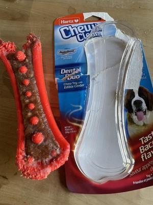 Your dog is hard-wired to chew, chew, chew. Encouraging this instinctual behavior by providing your canine companion with an appropriate chewing item can promote mental and emotional wellbeing along with dental benefits. The Hartz Chew 'n Clean Dental Duo is a long-lasting chew toy and treat all in one! It's constructed from durable materials that withstand mild to moderate chewing.