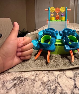 - EASY CLEANUP: The arena and dunk tank keep water contained, so kids can sink their opponents again and again for mess-free fun. (Remove targets and empty pods after use)