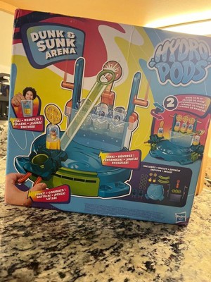 [This review was collected as part of a promotion.] The children loved playing with this Hasbro Hydro Pods Dunk & Sunk Arena. You simply fill them, and aim to try to hit the target and they sink. There are two different ways to play the game too. Whichever you prefer. It comes with Two different characters. All parts are included and it was pretty simple to put together. It's also easy to clean. It was such a fun game. I recommend this Hydro Pods Dunk & Sunk Arena.
