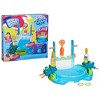 - A COMPLETE BATTLE SET: It's a collectible toy and a kids game all in one! Includes an arena (approximately 14 inches wide, 35 cm) with a dunk tank, 2 Hydro Pods characters (4 inches tall, 10 cm), 2 targets, 2 launchers, 10 discs, and 2 repositionable rails
