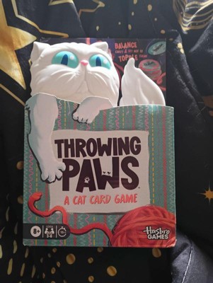 [This review was collected as part of a promotion.] I recently played Throwing Paws by Hasbro and I honestly had so much fun, Its a simple card game, but stacking the cards on the wobbly cat base makes it super intense and funny.