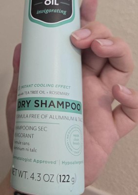 [This review was collected as part of a promotion.] The product is lightweight and doesn't leave my hair feeling heavy or stiff but I HATE the smell. I love tea tree so I'm not sure why but it is very strong and it lingers. I'm worried everyone can smell it on me. I appreciate that the product is aluminum and talc free, and I wanted to love it but I didn't. My hair gets greasy easily and I wanted this to work, but it didn't absorb my oils at all. I don't know if maybe I got a bad one because I know lots of people like it, but not for me 🤷♀️