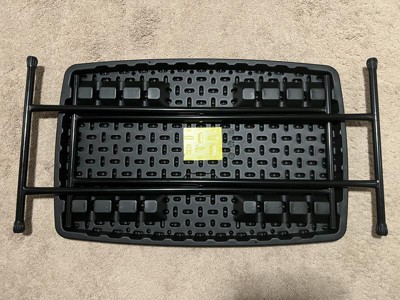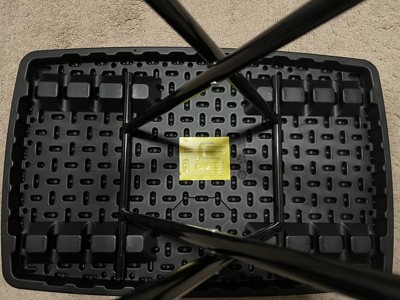 - The lightweight powder-coated steel base and safety locking mechanisms on each leg lend durability and strength to the high-density plastic top