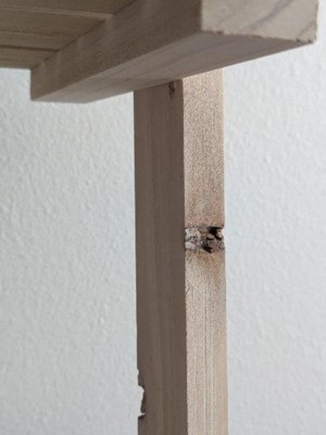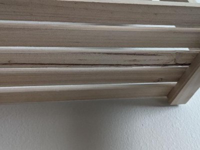 This is the most sorry excuse for a shelf I have ever purchased. I can't imagine it cost more than $4 to produce, materials included. Every single piece has a knot, splinter, hole or other blemish (see photos). It weighs less than 5 pounds. I purchased a white shelf and it literally looks like someone dusted baby powder on it (see photos again- how is that white?? Or painted at all????) I'm so sick of companies false advertising everything. Like you literally cannot purchase anything without an 80% chance you get a completely different product that's obscenely cheap. Even on sale this is the biggest rip off I've ever received. Target should be ashamed to be selling this. Anyone should. It cannot be that hard to make a shelf that isn't made of plywood and chalk, and they know after I put all the effort of putting it together (got 4 splinters btw) I'm not going to take it apart, load it in my car, and ship it back, so they win and I'm a sucker.