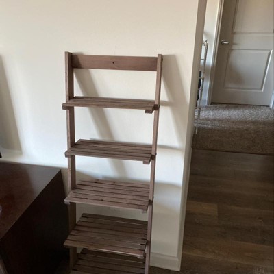 Hastings Home Narrow Ladder Bookshelf, 5-Tier Wooden Bookcase, Leaning Decorative Shelves for Display