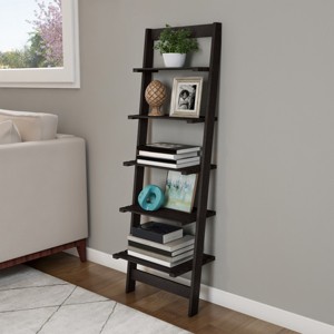 Hastings Home Narrow Ladder Bookshelf, 5-Tier Wooden Bookcase, Leaning Decorative Shelves for Display