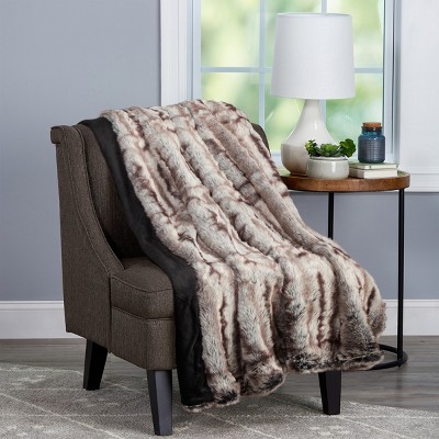 Hastings Home Faux Chinchilla Fur Throw Blanket With Faux Mink Back - 60" x 70", Brown/Beige