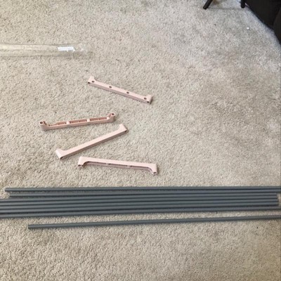 I received the box with no instructions, and appears to be missing all of the short poles and some end pieces. I have contacted Customer Service and we will see what happens.