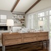 - Each set of bedside lamps features a flared trumpet-shaped base with drum ivory shades to create a mid-century look in your living room, bedroom, or entryway