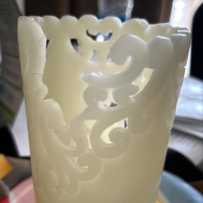 - These real wax pillar candles have varied heights for visual interest and feature intricate laser-cut lace detailing for an elegant finishing touch
