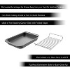 - PRODUCT DETAILS- Materials: Carbon Steel. Dimensions: (L)14.75" x (W)10"x (H)2". Oven safe to 450°F, and top rack dishwasher safe. Set includes pan and removable wire rack insert.