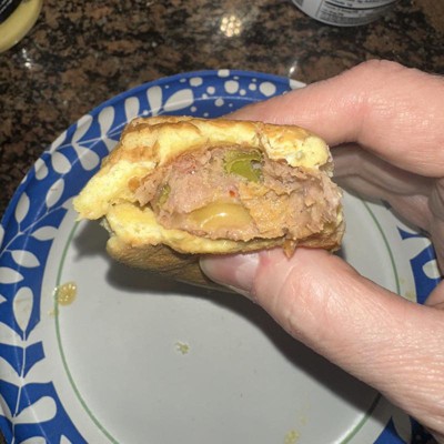 Not sure what other people in the reviews are tasting but these are really yummy to me. Quick to heat up since they are already cooked. Decent amount of cheese and chilies imo.