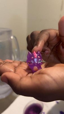 Bought this for my 4 year old niece. It was our first experience with hatchimals and we didn’t know what to expect. The part where it started hatching was quite eventful but I gave this 3 stars because the cleanup was unexpected. I have white granite countertops and I didn’t expect the purple dye. After taking the hatchimal out of the egg some dye spilled on the countertop. I had to quickly wipe it up before staining. I rinsed the egg to get all the dye out but more just kept coming out and spilling on the countertop. So I forewarn anyone that buys this to do it with protection over their countertops or do this activity outside and with clothes you don’t mind getting dirty. My 4 year old niece’ fine motor skills aren’t fully developed of putting the smaller pieces on. As a matter of fact my adult hands needed extra focus using my fine motor skills to put the spoon on. I would stay clear of this item if you are buying it for someone or families that like things neat and tidy.