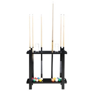 - Holds up to 10 pool cues and a complete set of billiard balls (cues and balls not included)