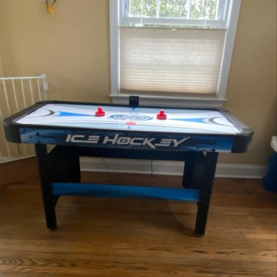 HORRIBLE! Bought for my 5 yr old gandsons birthday. He was so excited played great for a day or so until the air coming out cant even nudge a piece of paper. It is more of a manual hickey table. Useless. I will be returning tomorrow. Waste of money. Do NOT waste your time or money. Spend the extra bucks and get a real air hockey table. GARBAGE!.