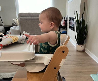 We got this chair to replace my toddler’s counter seat and it’s great so far! My toddler (who typically hates being strapped into his regular high chair) loves sitting in this chair and actually prefers sitting at the table with it. I took a star off because it was a little pricey, for the price maybe a cushion and a tray could be included. Besides that, it’s great and super easy to clean!