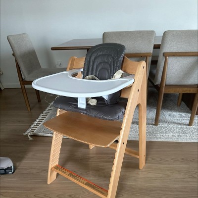 Love it! Easy for me to put together. The wood is very sturdy and doesn’t ding easily. Doesn’t take up a lot of space. Easy to wipe down. It gets baby in the perfect position and baby is very comfortable. Prefer it for multiple reasons over stoke Tripp trapp, especially bc this one really doesn’t tip back. We have the older version of this (alpha) and while it was great and looks like new after 2 years of daily use, this version has a lot of improvements.