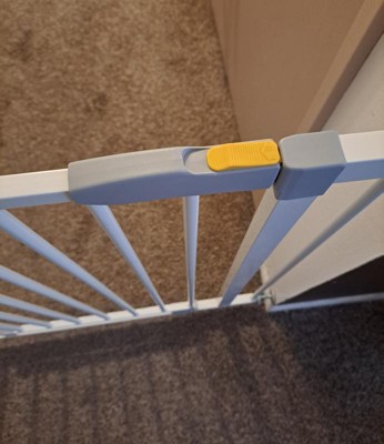 [This review was collected as part of a promotion.] This gate is great for wide openings as it comes with an extender. What’s also great too is that the installation doesn’t cause any permanent damage to the walls. There is a lock on gate. You can feel safe with this gate with your little ones.
