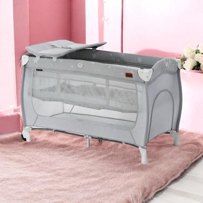 • EASY PORTABILITY: Featuring wheels for easy movement between rooms, this travel cot keeps your child close and secure wherever you are, with a side exit for toddlers to crawl in and out