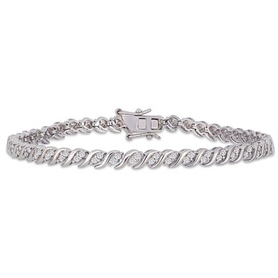 Illuminate her wrist with this alluring sterling silver bracelet, set with a wave-link design. This piece has 40 rose-cut promo quality diamonds, which are on the lowest of the diamond color and quality scale. Rose-cut, promo quality diamonds are milky and cloudy in nature. They have asymmetrical ball shape and are filled with inclusions. The diamonds are set in a prong setting, and will add a bit of shimmer to any outfit, casual or formal.