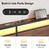 This modern Hausource LED bed frame combines rustic charm with smart function. Built-in USB-C and USB-A ports on the headboard offer easy charging. The sturdy iron frame supports up to 1000 lbs, with an anti-slip embedded design and 13 inches of storage space underneath. Customize your ambiance with remote-controlled LED lighting. No box spring needed—just strong, stylish, and storage-friendly.