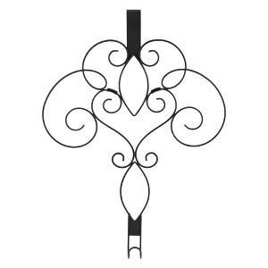 This beautifully crafted scrollwork wreath hanger adds a sophisticated touch to any door. Available in two scrollwork designs, and finished in a matte black color. Bumpers placed strategically on the hanger protect the door from scratches, and it holds up to 20 pounds. 18 inches long. Indoor or outdoor use.