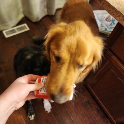 [This review was collected as part of a promotion.] I grabbed this toy because I thought it was cute and I think it’s so funny that my dog absolutely loves it. He’s been continuing to chew on it and loves the squeaker sound of it too. On top of the squeaker it also makes a crinkled noise like a water bottle wood, and he always has loved that aspect of them. It is the perfect size for him where he can grab it in his mouth and yet still run around he is very excited.