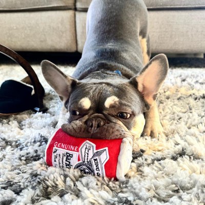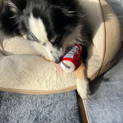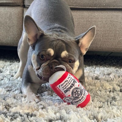 [This review was collected as part of a promotion.] I bought this toy hoping it would keep my dog busy, but it didn’t hold her interest at all. There’s just not much for him to chew on so she lost interests after a few minutes. It does make the crinkly sound that dogs like and had a little squeaker inside so other dogs might find it entertaining. I think the design- shaped like a Budweiser can- was more entertaining for me than my dog!