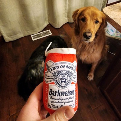 Time to crack open a cold one for your canine with this dogger lager! The Barkweiser Beer Can will quickly become your furry friend’s favorite. The fun parody design matches the real thing so well, you might even reach for it on a hot day! And the plush exterior provides the perfect texture for your thirsty pup to bite into, where the hidden squeaker awaits inside. So much fun, they won’t be able to chew just one! Bark responsibly.
