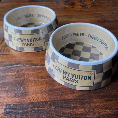 Medium size chewy Vuiton dog bowl set
