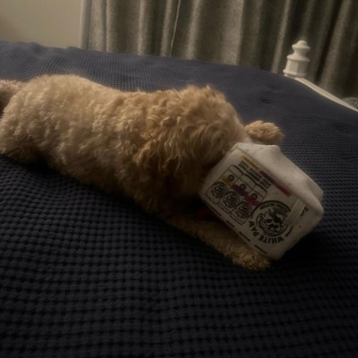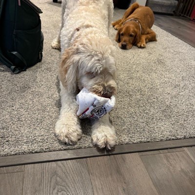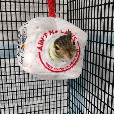 [This review was collected as part of a promotion.] 5/5 stars from my whole crew! I originally got this for my dogs (the little squeaker/crinkle cans are their favorite things in the world, and the "house" is great for hide-and-seek), but it ended up being a perfect second home for our rescue squirrel! It's small, which is exactly what I needed for a perfect cozy home. It's durable enough for my pups' rough play and cozy enough for the squirrel's little hideaway. If you have small pets that love tiny plush things, just buy it. Seriously a great multipurpose toy!