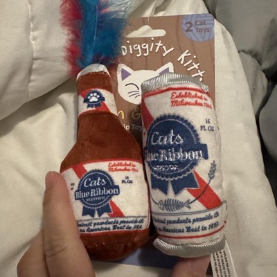 [This review was collected as part of a promotion.] These cat toys were a big hit for my mom‘s cats. They are filled with catnip and really caught their attention. This set comes with two toys. One is a bottle shape and one is a can shape to mimic a beer bottle and a beer can. These are about 5 inches tall, and 2 inches wide. They are the perfect size for the cats to play with and carry around. The bottle has feathers on top which the cats really love. I received an incentive to write this review.