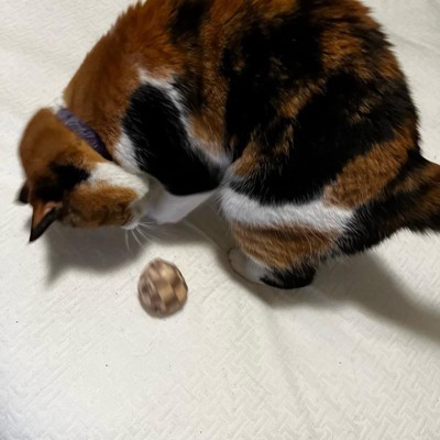 [This review was collected as part of a promotion.] These are very cute. Much more attractive than I was expecting. Lots of beautiful colors and designs. They came in a pack of three. Cost was a little more than I would normally pay, but we went for it. We have two cats and they seemed very interested in them. They liked batting them around. They have a little crunch to them to entice the animal to come and play. They are bigger than the normal cat balls so easier to find under a couch or fridge, where my cats will inevitably slap back there. 😂