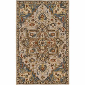 Collection:BirtleyColors:Camel, Blue, Rust, OliveConstruction:Hand TuftedMaterial:100% WoolPile:Medium PilePile Height:0.27"Styles:TraditionalBacking:CanvasMade In:IndiaThickness:0.47"