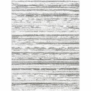 A: The rug features a contemporary design with a minimalist striped pattern, adding sophistication to any space.
