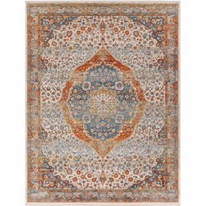Collection:BojanColors:Blue, Rust, Mustard, Beige, Burnt OrangeConstruction:Machine WovenMaterial:100% PolyesterPile:Low PilePile Height:0.16"Styles:TraditionalMade In:TurkeyThickness:0.22"Fringe Length:0.6"