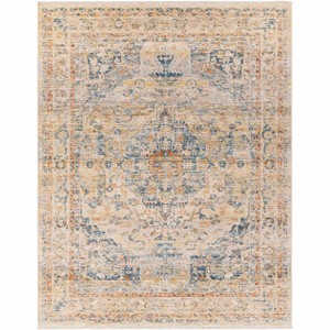 A: The rug features a traditional style with a sophisticated and elegant design.