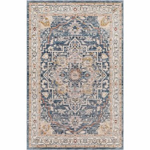 Collection:BreeColors:Blue, Ivory, Gray, Mustard, Medium Green, RustConstruction:Machine WovenMaterial:100% PolyesterPile:Medium PilePile Height:0.24"Styles:TraditionalBacking:CanvasMade In:TurkeyThickness:0.35"Fringe Length:4.3"