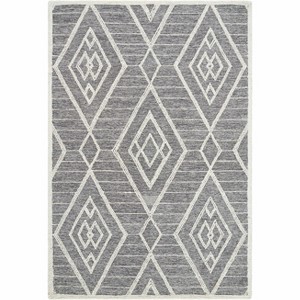 Collection:CeannaColors:Gray, Off WhiteConstruction:Hand TuftedMaterial:100% WoolPile:Medium PilePile Height:0.28"Styles:Transitional,BohemianBacking:CanvasMade In:IndiaThickness:0.51"