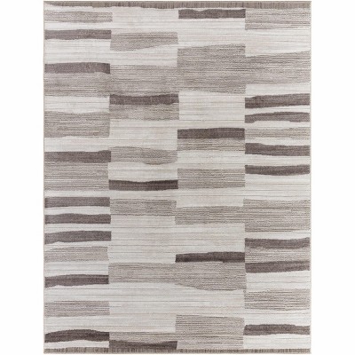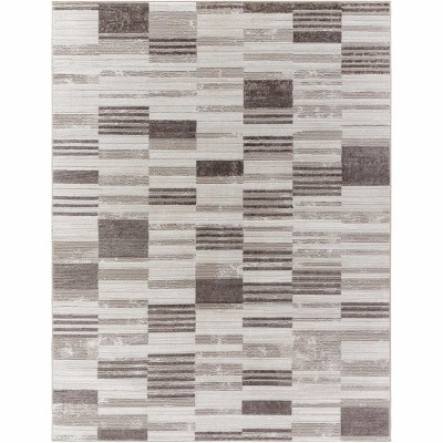 A: The area rug features a contemporary design with a timeless geometric pattern, adding sophistication to any space.
