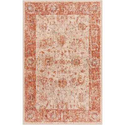 A: This area rug features a traditional style, perfect for adding elegance to any room.