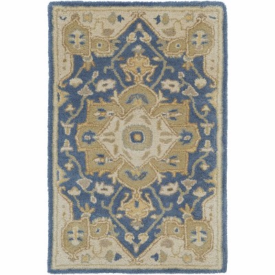 Collection:MerriamColors:Denim, Dark Brown, Light Brown, Lime Green, BeigeConstruction:Hand TuftedMaterial:100% WoolPile:Medium PilePile Height:0.39"Styles:Transitional,TraditionalBacking:CanvasMade In:IndiaThickness:0.63"