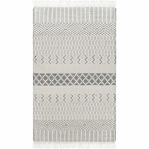 Collection:LimogesColors:Black, CreamConstruction:Hand WovenMaterial:100% NZ WoolPile:No PileStyles:Transitional,BohemianMade In:IndiaThickness:1"Fringe Length:5"