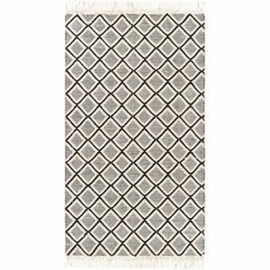 Collection:MariaColors:Black, CreamConstruction:Hand WovenMaterial:100% NZ WoolPile:No PileStyles:Transitional,BohemianMade In:IndiaThickness:1"Fringe Length:5"