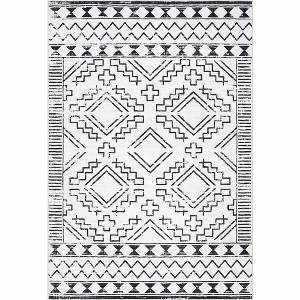 Collection:MedanColors:Ivory, CharcoalConstruction:Machine WovenMaterial:100% PolyesterPile:Low PilePile Height:0.12"Styles:Transitional,BohemianBacking:CanvasMachine Washable:YesMade In:ChinaThickness:0.25"