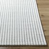 A: The rug features a contemporary striped design, blending modern and minimalist elements.