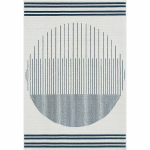 Collection:NabilColors:Ivory, Midnight BlueConstruction:Machine WovenMaterial:100% PolypropylenePile:No PileStyles:ContemporaryOutdoor Safe:YesMade In:EgyptThickness:0.16"